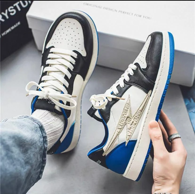 The VoltStrike Retro Low Sneakers are designed for those who demand both style and performance. These sneakers boast a classic low-top silhouette with a premium faux leather upper, delivering timeless appeal with a modern twist. The standout feature is the lightning bolt emblem on the side, adding an electrifying vibe that commands attention. The shoes are crafted in a bold black and white base, accentuated with vibrant royal blue details on the heel and sole. Perforated toe boxes ensure breathability, while the cushioned midsole provides all-day comfort for casual wear or urban adventures. Durable outsoles ensure long-lasting grip and traction.