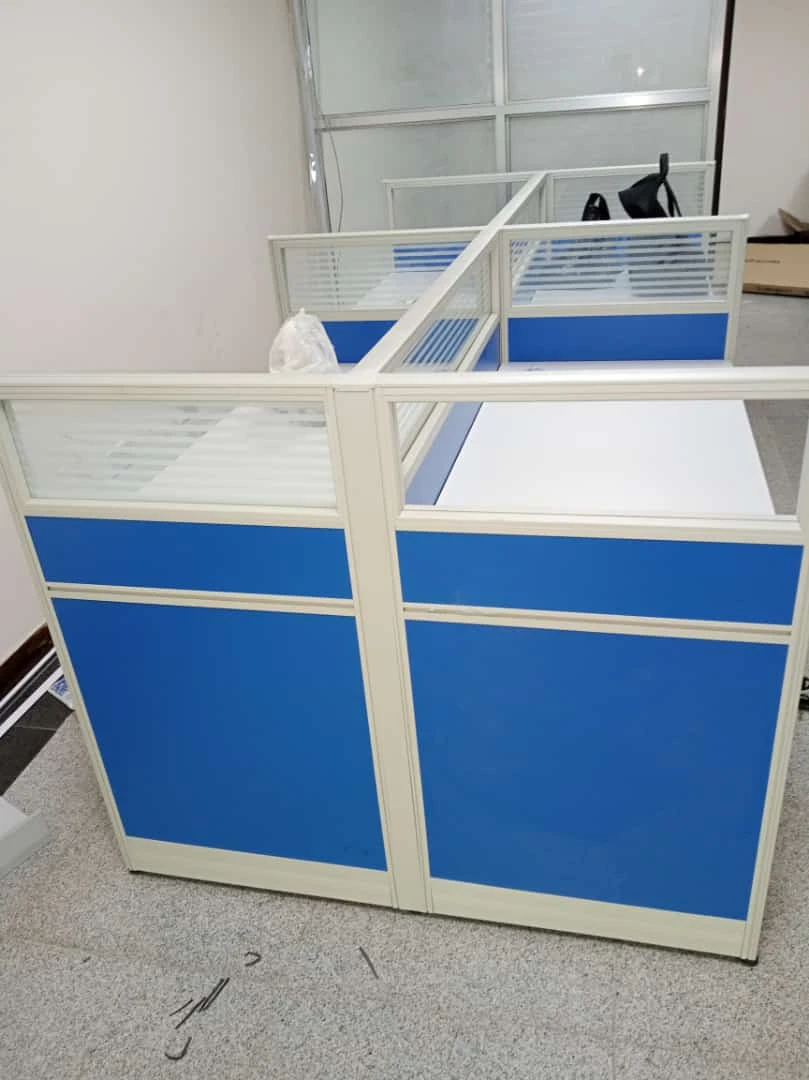 Single-Compartment Workstation Description: Maximize your concentration and productivity with the Single-Compartment Workstation. Designed for the individual professional, home office enthusiast, or specialized task area, this compact desk provides a clean, organized surface to call your own. It’s the perfect foundation for a clutter-free, efficient workday. Key Features & Benefits: Spacious Work Surface: Ample room for dual monitors, a laptop, notebooks, and essential peripherals. Streamlined Design: A single, dedicated compartment eliminates distractions, helping you focus on the task at hand. Built-In Cable Management:Keep wires and power strips neatly tucked away and out of sight for a clean aesthetic. Durable Construction: Made from high-quality, scratch-resistant materials for long-lasting daily use. Easy Assembly: Get set up and productive in no time with our straightforward, tool-included assembly kit. Ideal For: Home offices, corporate individual contributors, reception areas, studio apartments, and focused task stations. Product Description: Double-Compartment Workstation Description: Create the ultimate collaborative pair or flexible workspace with our Double-Compartment Workstation. This versatile unit is ideal for shared offices, dynamic duos, or professionals who need distinct zones for different tasks (e.g., computer work and writing). Foster teamwork or organize your own workflow seamlessly. Key Features & Benefits: Dual Dedicated Stations: Provides two independent work surfaces, perfect for two colleagues or separating computer work from creative spread. Space-Efficient Footprint: Maximizes available floor space while accommodating two users comfortably—ideal for modern offices and tighter layouts. Privacy & Proximity: The central divider offers a degree of personal space while still allowing for easy communication and collaboration. Shared Central Storage: Often includes a central utility column or shared overhead bin for common supplies, reinforcing team efficiency. Modern, Unified Look: Creates a cohesive and professional appearance for any office environment. Ideal For:Team partners, small business startups, coworking spaces, home offices with two users, and client-facing consultation areas. Product Description: Four-Compartment Workstation